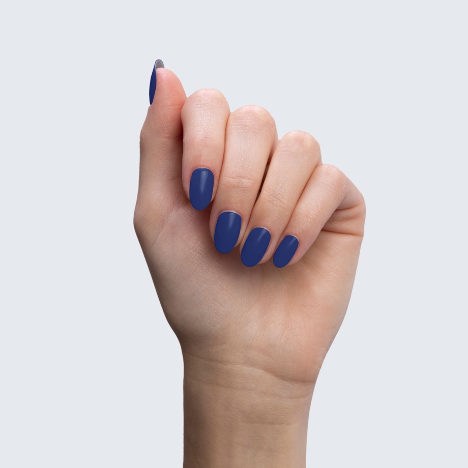 True indigo. Dark. 1 coat sheer, 2+ coats opaque. Cool undertone.
